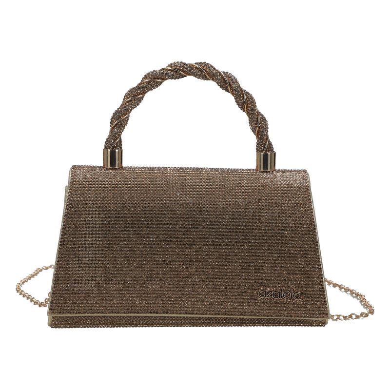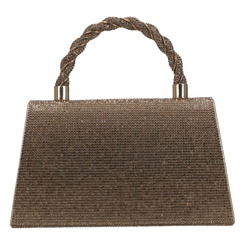 Bolso de mano con diseño brillante y asa trenzada. Un accesorio elegante y glamuroso, ideal para destacar en ocasiones especiales.