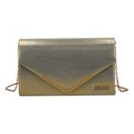 Clutch con solapa tipo sobre y detalle metálico en forma de V. Un accesorio sofisticado y moderno, ideal para realzar tus looks en eventos y ocasiones especiales.