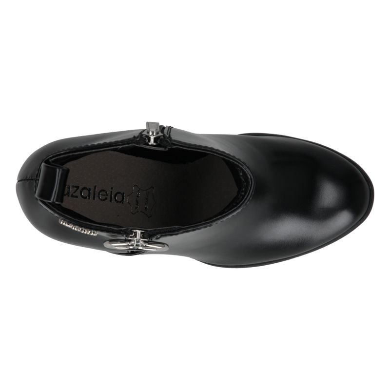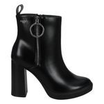 Un botín elegante, para un look sofisticado, su diseño cuenta con un cierre lateral con jalador metalizado en forma de aro que le añade un toque moderno y distintivo. El tacón grueso proporciona estabilidad y la plantilla de cuero ofrece un mejor confort, es perfecto para eventos formales y para elevar tus atuendos casuales con un toque elegante.