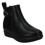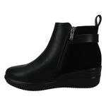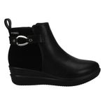Un botín en cuña baja es la elección perfecta para quienes buscan comodidad y estilo, con combinación de texturas y un ornamento en la parte lateral le dan un toque elegante. La cuña proporciona altura sin comprometer la estabilidad, su plantilla de cuero mejora el confort convirtiéndolo en una excelente opción para el uso diario.