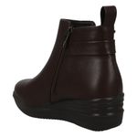 Un botín de estilo clásico, tiene una correa que bordea la parte trasera con unos ornamentos metálicos que le dan un toque sofisticado. La cuña proporciona estabilidad, su plantilla de cuero es ideal para el uso diario, ya que brinda un mejor confort. Una buena opción para complementar tus outfits casuales o formales.