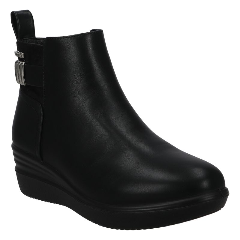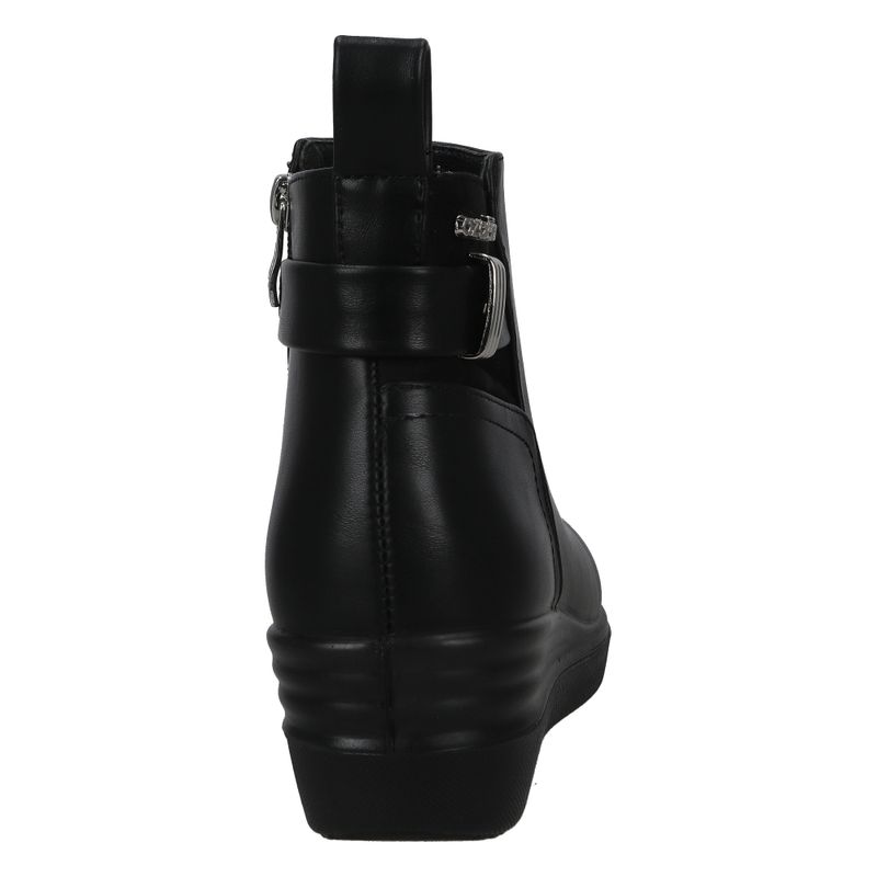 Un botín de estilo clásico, tiene una correa que bordea la parte trasera con unos ornamentos metálicos que le dan un toque sofisticado. La cuña proporciona estabilidad, su plantilla de cuero es ideal para el uso diario, ya que brinda un mejor confort. Una buena opción para complementar tus outfits casuales o formales.