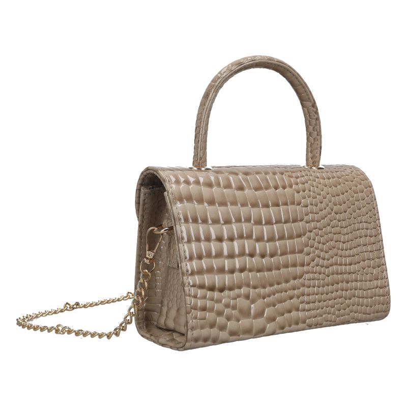 Bolso de mano con textura tipo croco y cierre metálico frontal. Un accesorio elegante y sofisticado que complementa tus looks con estilo único