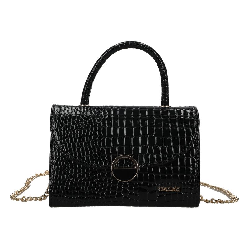 Bolso de mano con textura tipo croco y cierre metálico frontal. Un accesorio elegante y sofisticado que complementa tus looks con estilo único