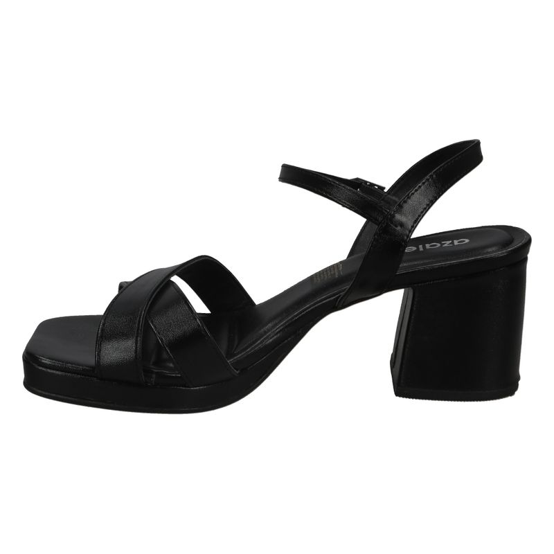 Sandalia de tacón medio con tiras cruzadas en la parte delantera y ajuste al tobillo, pensada para brindar elegancia y comodidad en cada paso.