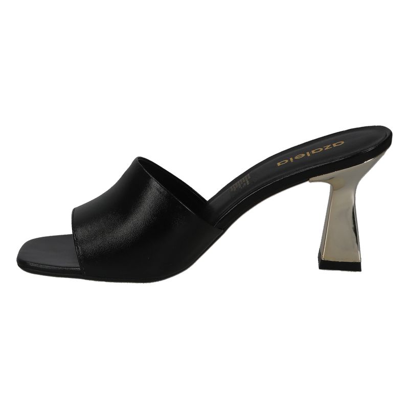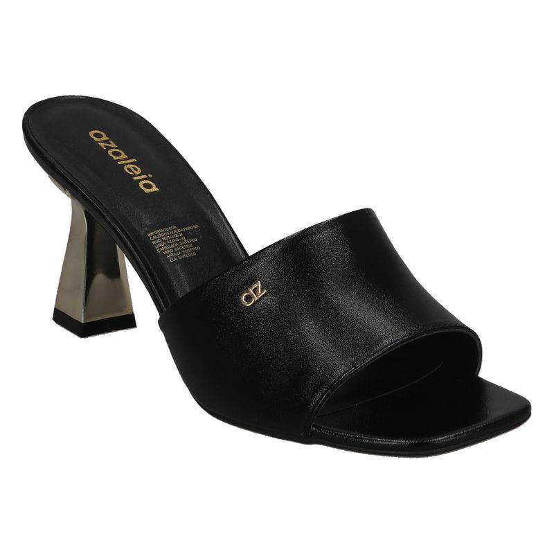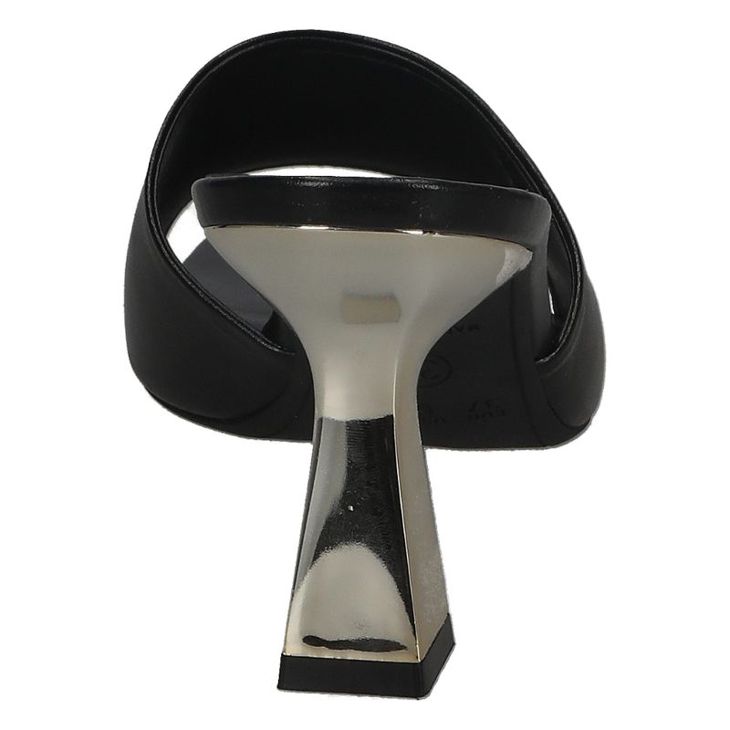 Sandalia de tacón metalizado con diseño elegante y minimalista, realzada con un tacón geométrico moderno que aporta estilo y sofisticación a tus looks.