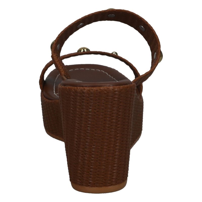 Sandalia de plataforma con acabado tipo tejido y apliques metálicos, perfecta para elevar tus looks con estilo y comodidad.