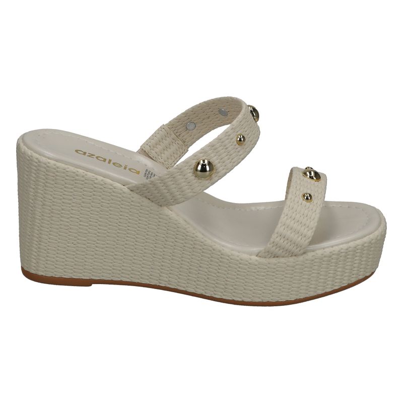 Sandalia de plataforma con acabado tipo tejido y apliques metálicos, perfecta para elevar tus looks con estilo y comodidad.