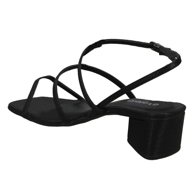 Sandalia de tacón bajo con delicadas tiras brillantes, diseñada para aportar sofisticación y elegancia a cualquier ocasión.