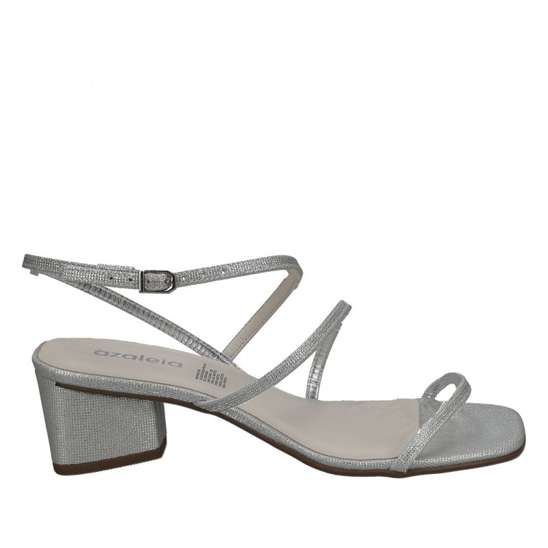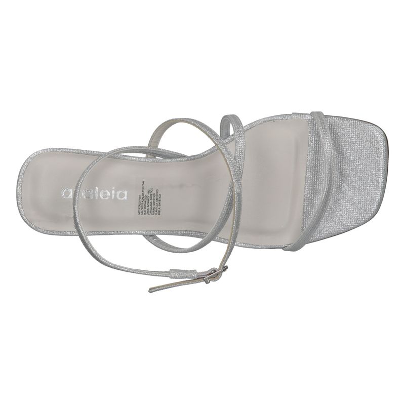 Sandalia de tacón bajo con delicadas tiras brillantes, diseñada para aportar sofisticación y elegancia a cualquier ocasión.