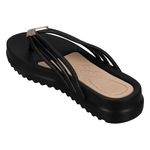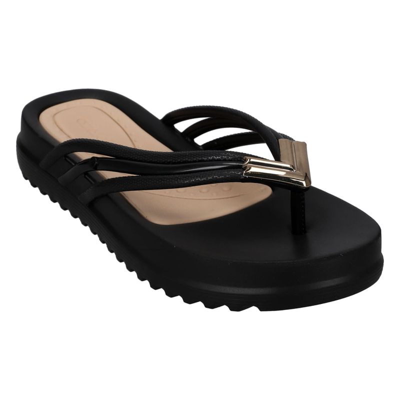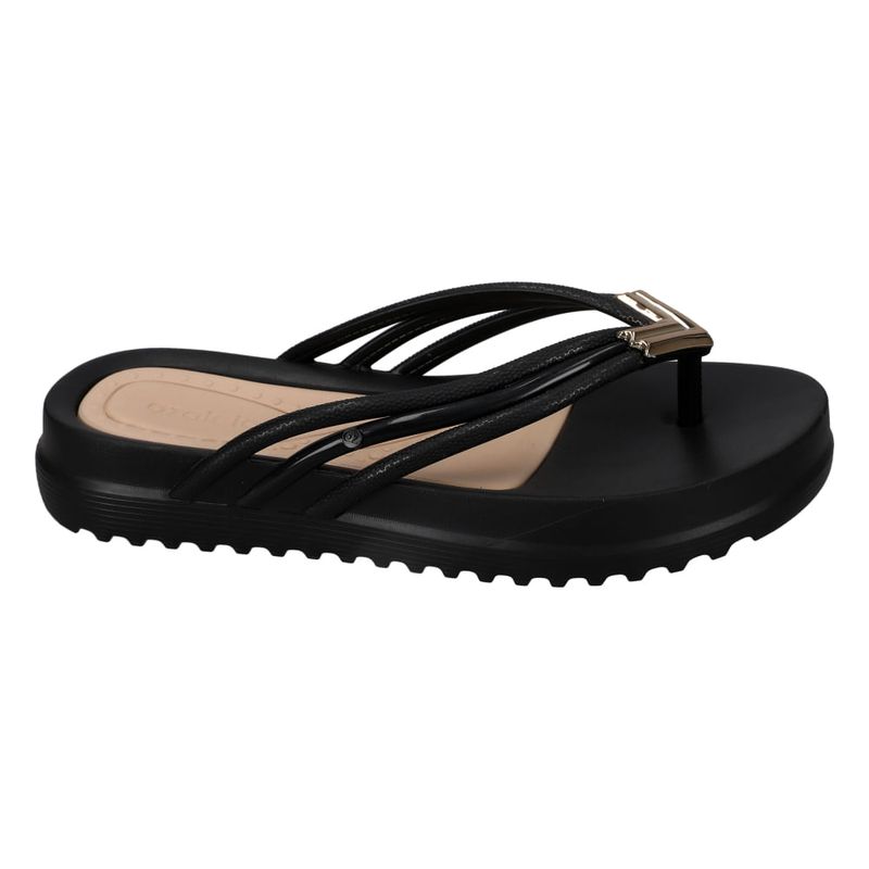 Una sandalia de plataforma, con su diseño de multiples tiras que se juntan en la parte delantera para formar una sandalia de estilo tijera, tiene un aplique metálico que le da un toque moderno y elegante. Son ideales para ocasiones casuales o para el día a día, combinando estilo y funcionalidad.