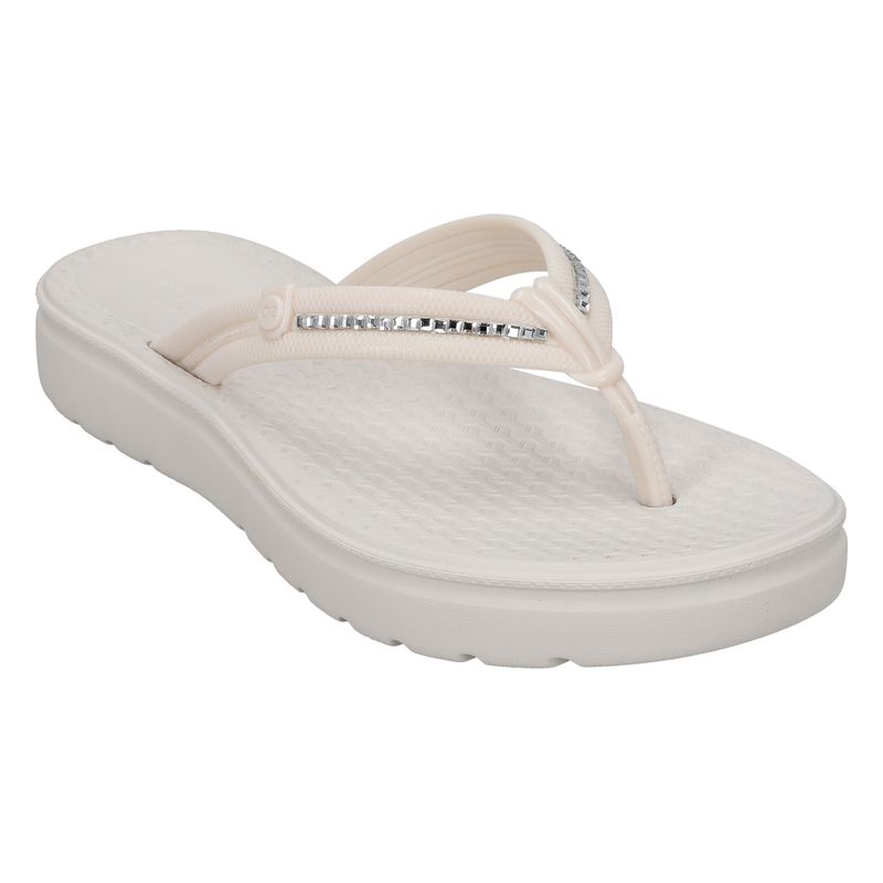 Sandalia con un diseño sencillo y elegante, tiene un estilo tijera con tiras que tienen detalle de brillos que le dan un toque elegante, la plantilla es anatómica proporcionando confort, combina comodidad con un toque de estilo chic