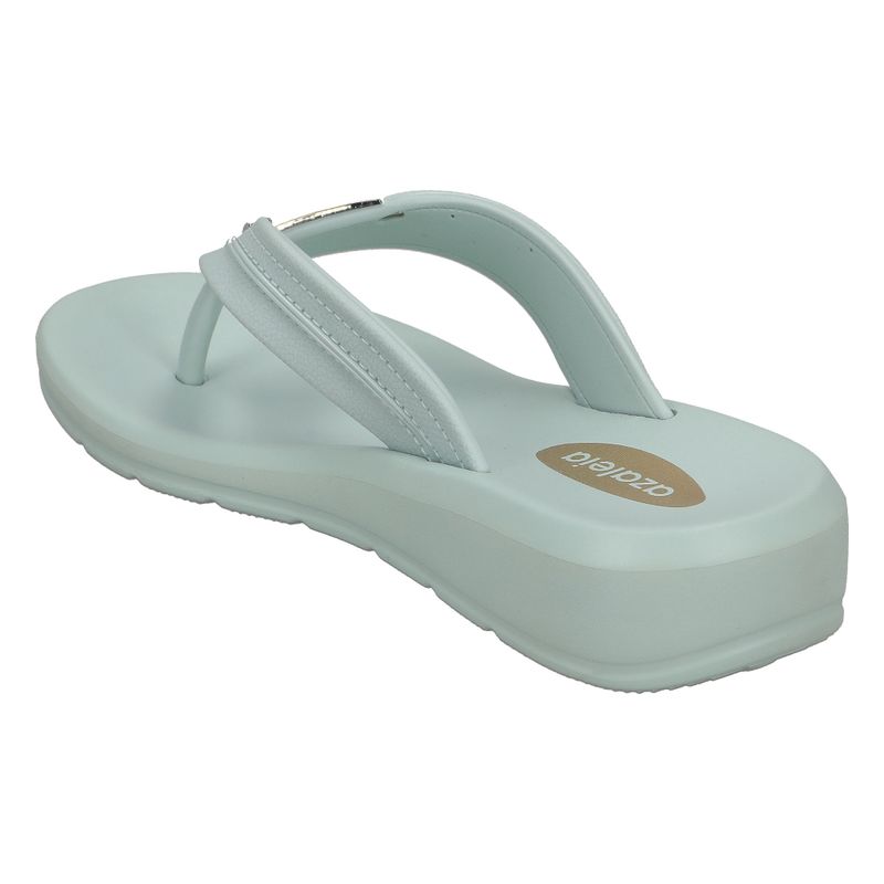 Sandalia de plataforma baja con tiras elegantes y detalle metálico en el empeine que realza su diseño. Su plantilla acolchada y suela ligera aseguran comodidad en cada paso, ideal para looks casuales y modernos.