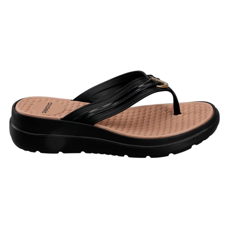 Sandalia con tiras en forma de tijera que brinda buen agarre en cada paso, tiene un detalle metálico que le da un toque sofisticado. La plantilla tiene una textura anatómica en material EVA que brinda buen confort, ideal para el día a día o para combinar con un look casual, combinando estilo y funcionalidad.
