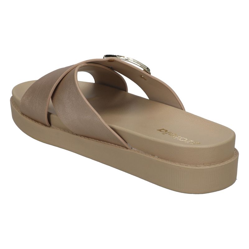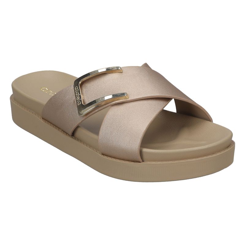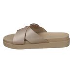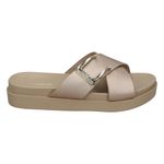 Sandalia con plataforma ligera, tiras cruzadas y hebilla metálica. Un calzado cómodo y versátil que combina estilo moderno y practicidad para cualquier ocasión