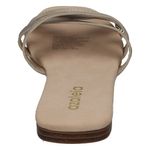 Sandalia plana con diseño de tiras cruzadas metalizadas. Un calzado ligero, cómodo y elegante que complementa perfectamente tus looks casuales y veraniegos