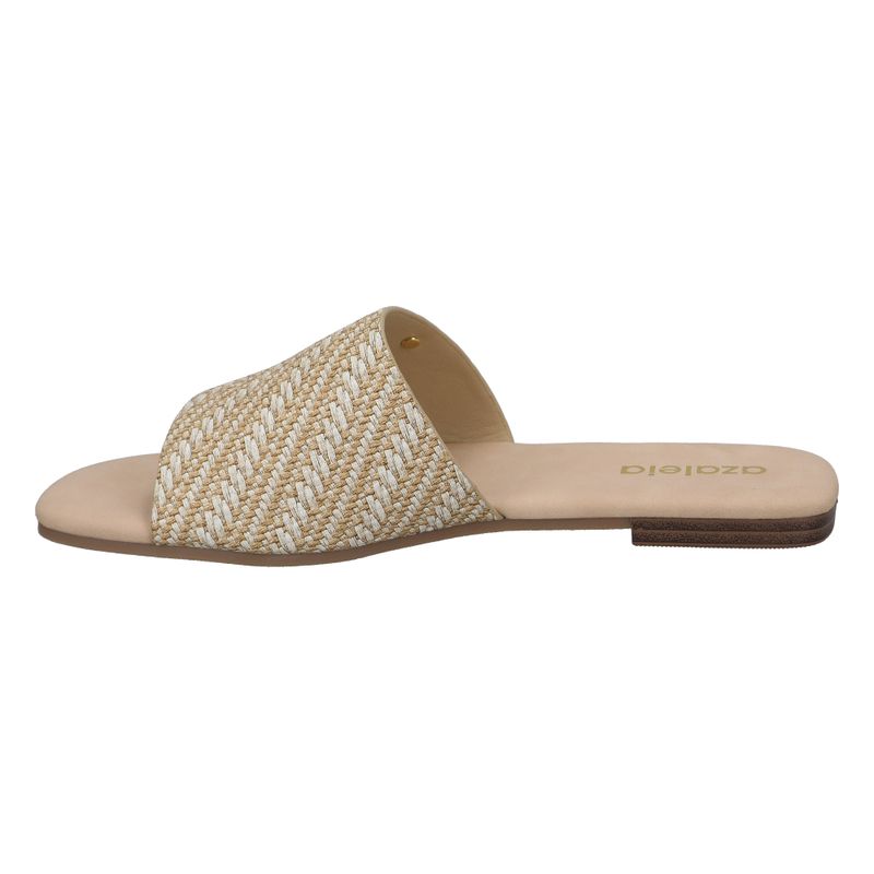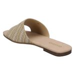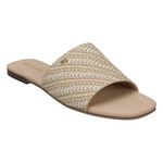 Sandalia plana tipo slide con capellada ancha con una textura moderana. Un calzado cómodo y versátil que aporta un toque fresco a tus looks