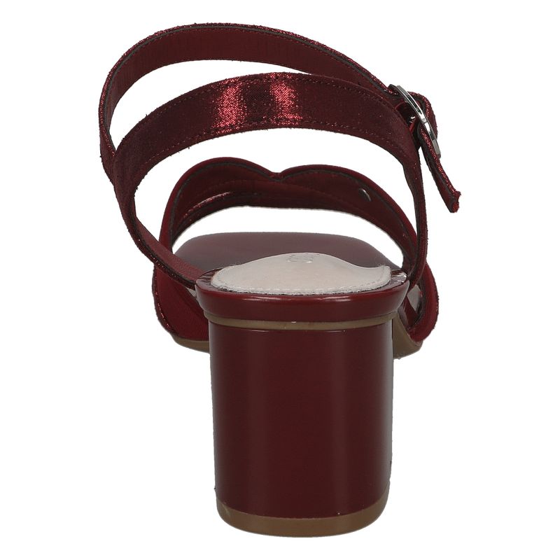 Sandalia de tacón ancho con diseño de tiras delanteras con una textura de brillo y pulsera ajustable. Un calzado elegante y cómodo que realza cualquier look con un toque sofisticado