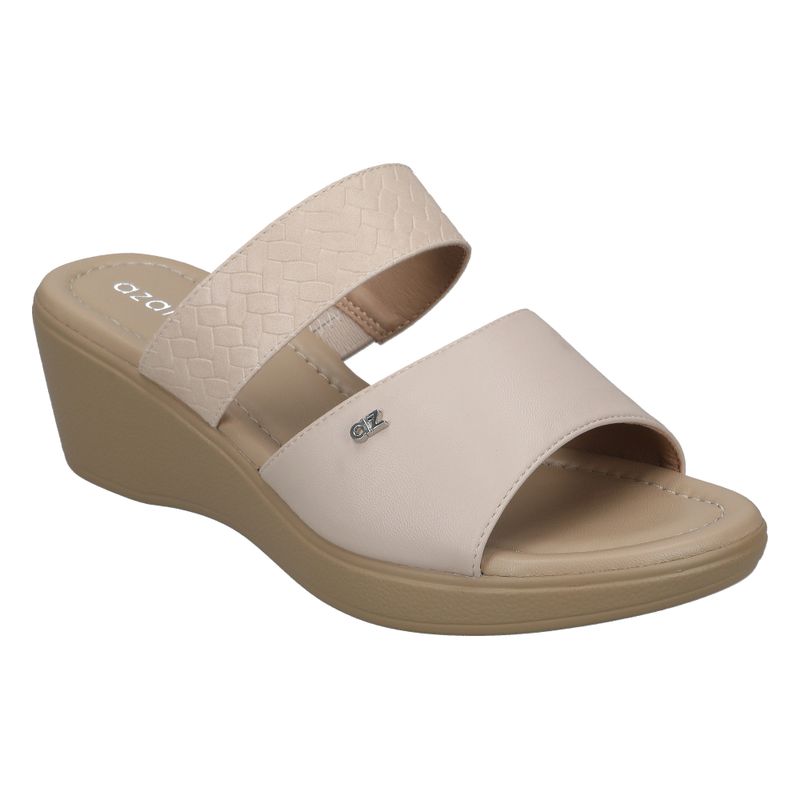 De tiras anchas, con una textura sutil en la tira trasera es perfecta para brindar comodidad y estilo en cada paso