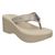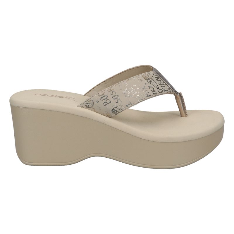 Sandalia de plataforma con diseño moderno y tiras tipo tijera, con estampado metalizado, ideal para un look cómodo y lleno de estilo.