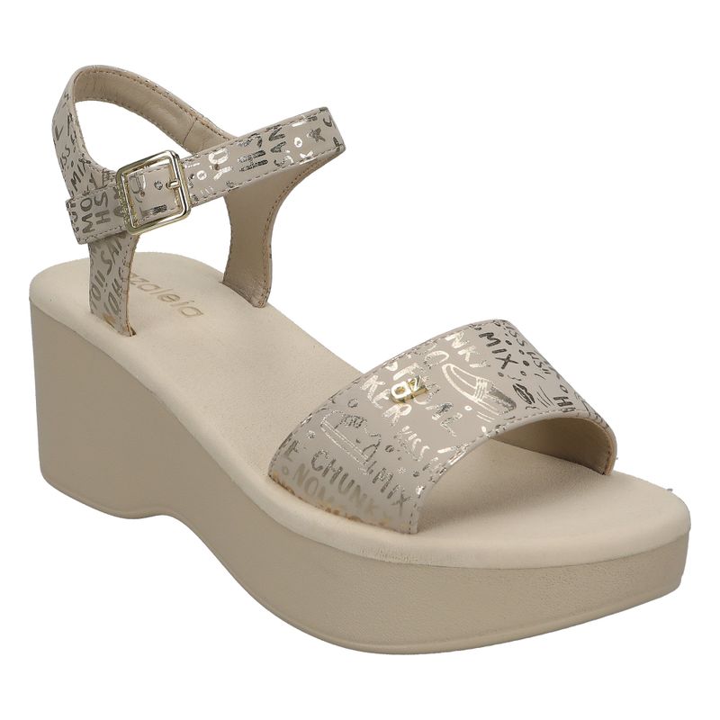 Sandalia de plataforma, cuenta con pulsera regulable en la parte del tobillo, su estampado metálico la hace perfecta para un look moderno y lleno de estilo