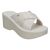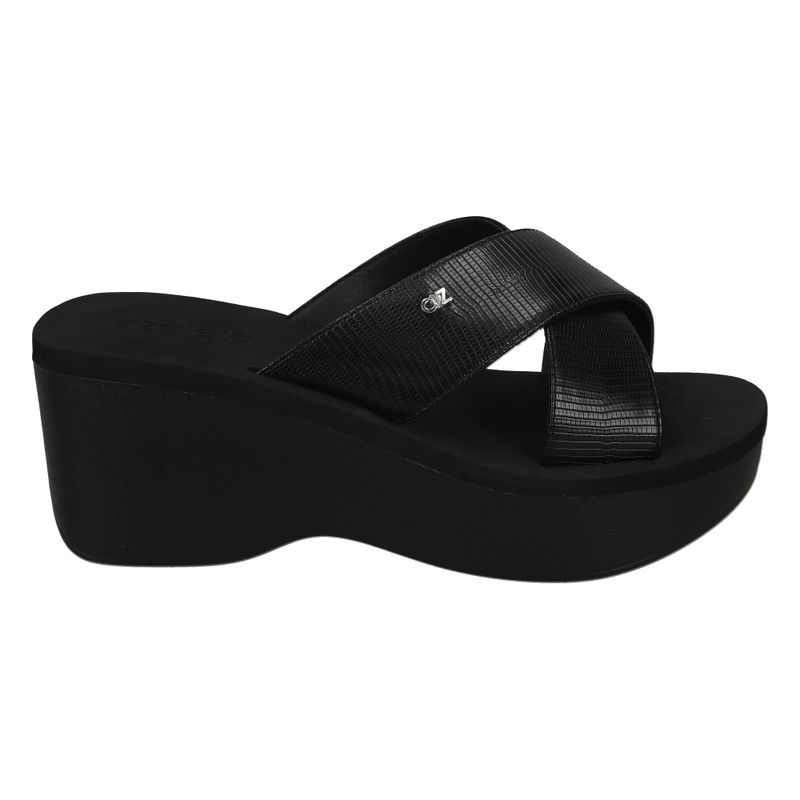 Sandalia de plataforma con tiras cruzadas con una textura de crocos pequeños, que le dan un toque casual, aportan estilo y seguridad en cada paso. Su diseño moderno y versátil combina comodidad y moda, ideal para lucir en cualquier ocasión.