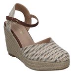 Sandalia tipo cuña con diseño de yute trenzado y pulsera ajustable al tobillo para un calce seguro. Perfecta para elevar cualquier look casual con un estilo fresco y femenino.