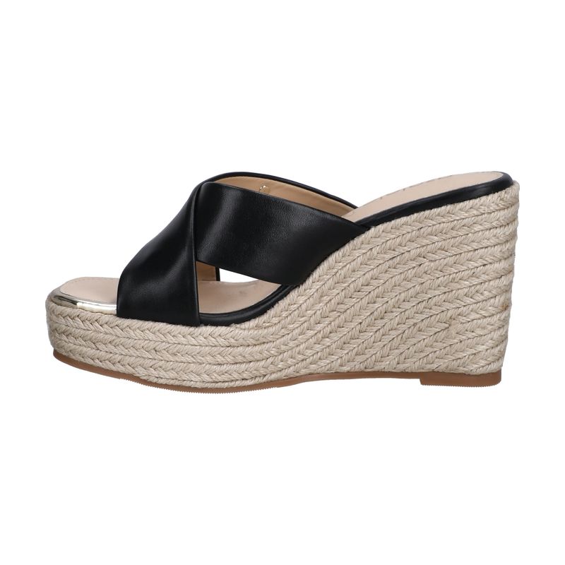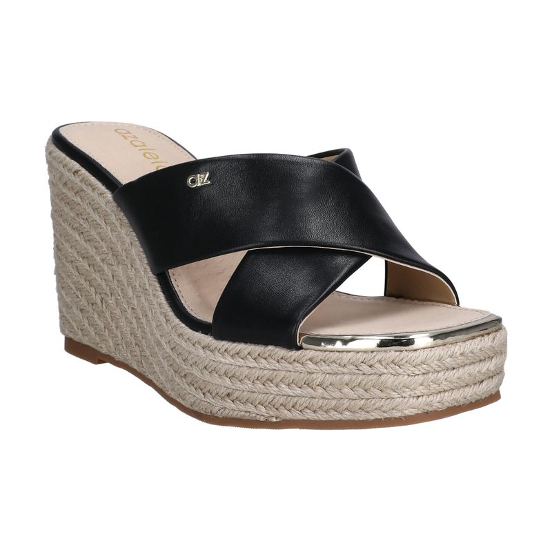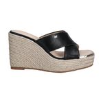 Sandalia en cuña, esencial para climas cálidos, con tiras cruzadas en la capellada y detalle metalizado en la puntera. Plantilla de cuero que permite una mejor absorcion al sudor y mayor comodidad.
