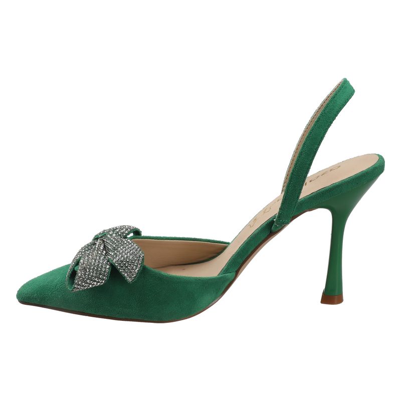 Stiletto con detalles en la parte frontal de un lazo con predería que le aporta elegancia que añade un toque de sofisticación y brillo a tus atuendos.