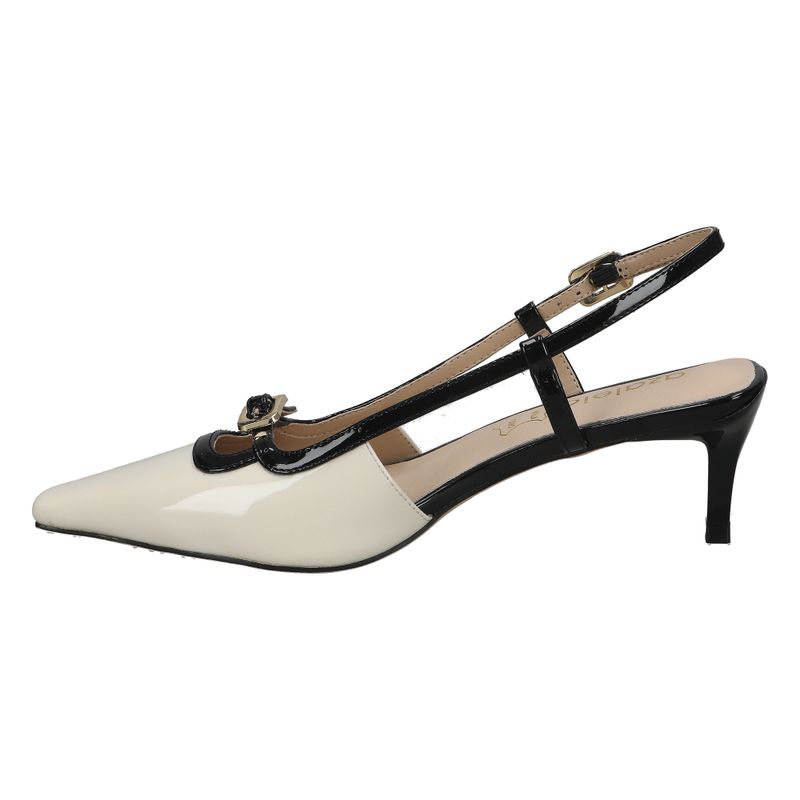 Stiletto de tacón bajo y punta fina, con delicadas tiras ajustables que aportan estilo y comodidad para un look elegante y versátil.