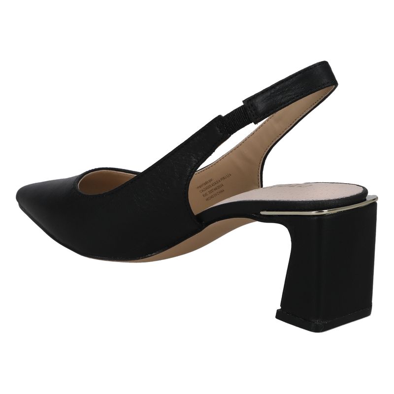 Este calzado de estilo destalonado, ideal para quienes buscan elegancia y comodidad, con una pulsera que rodea la parte del talón para ofrecer un mejor agarre, ofrece un toque sofisticado, perfecto para eventos formales o para elevar cualquier atuendo, su taco ancho proporciona estabilidad y la plantilla de cuero ofrece confort haciéndolo una opción versátil.