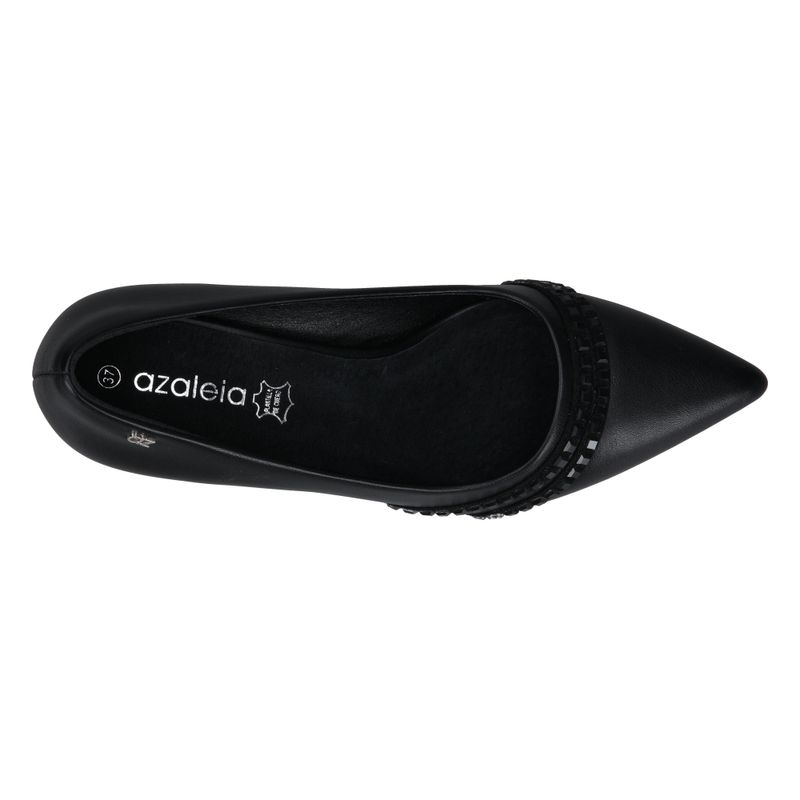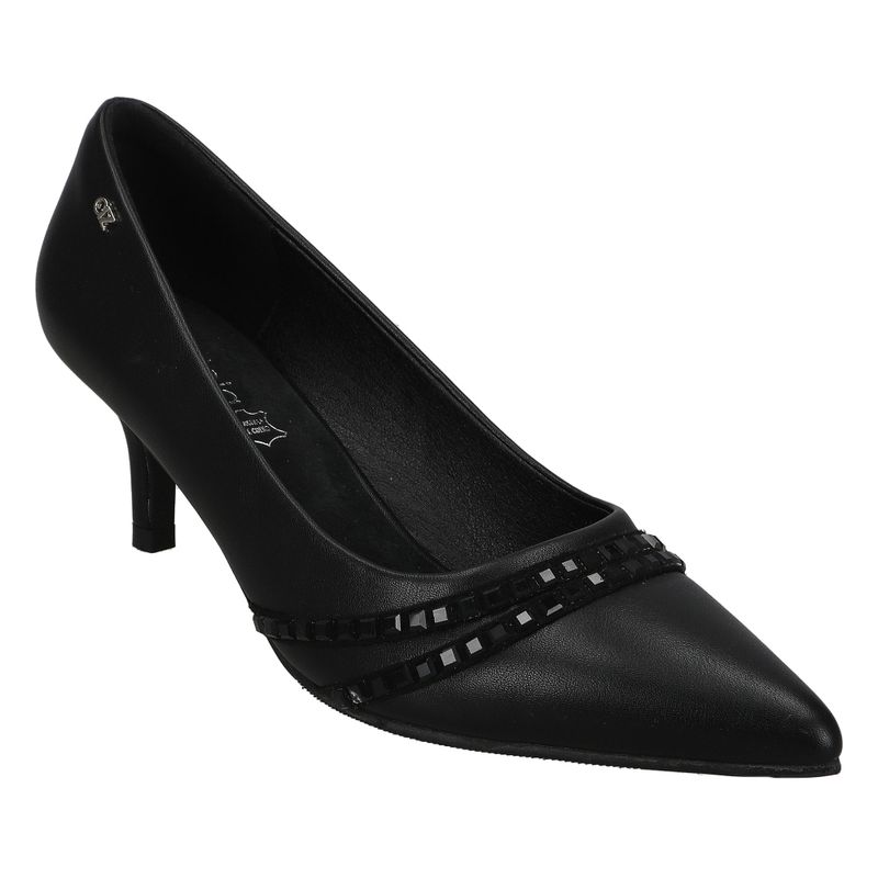 Stiletto Azaleia de tacón medio con punta fina y delicados apliques brillantes, ideal para un look sofisticado y lleno de elegancia.
