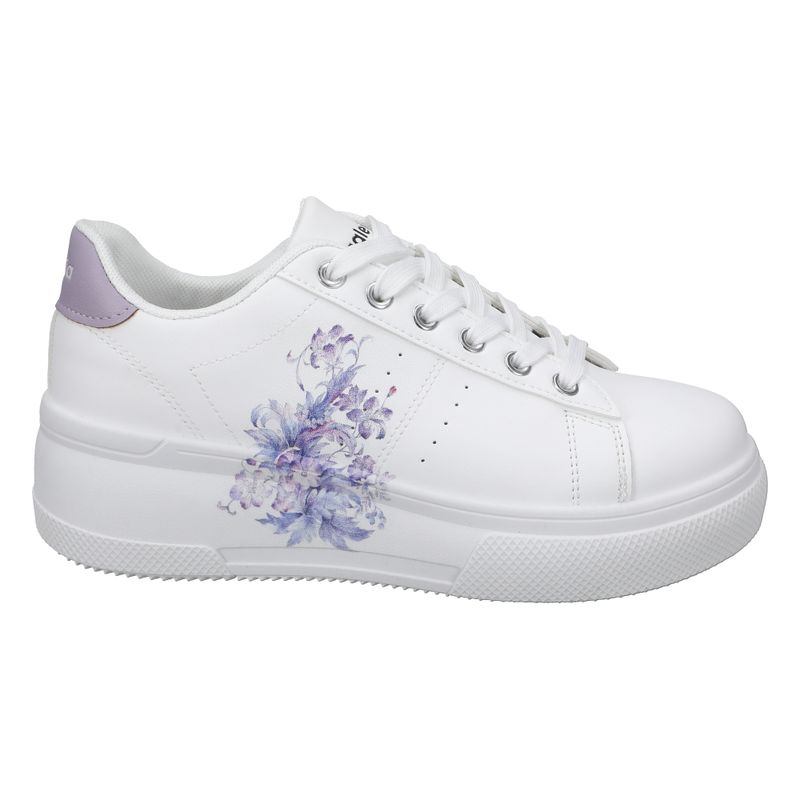 Una zapatilla moderna, con un delicado estampado floral en la parte lateral, perfecta para un look casual o urbano. Su diseño de estilo único es ideal para quienes buscan confort sin perder el estilo.